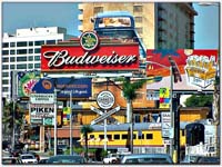 The Sunset Strip is the name given to the mile and a half stretch of Sunset Boulevard that passes through West Hollywood, California. The Strip is probably the best known portion of Sunset, embracing a premier collection of boutiques, restaurants, rock clubs, and nightclubs that are on the cutting edge of the entertainment industry. It is also known for its trademark array of huge, colorful billboards and has developed a notoriety as a hang out for rock stars, movie stars and entertainers. Los Angeles private tours